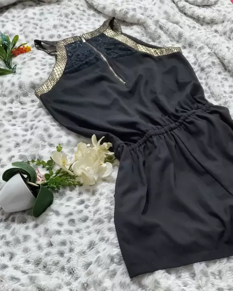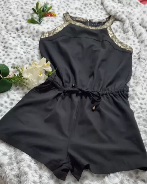 Jumper short. Super bonito y elegante . Liston para ajustar a la cintura ,adorno en el cuello dorado,cierre en la espalda, lo puedes usar con medias en temporada de frio