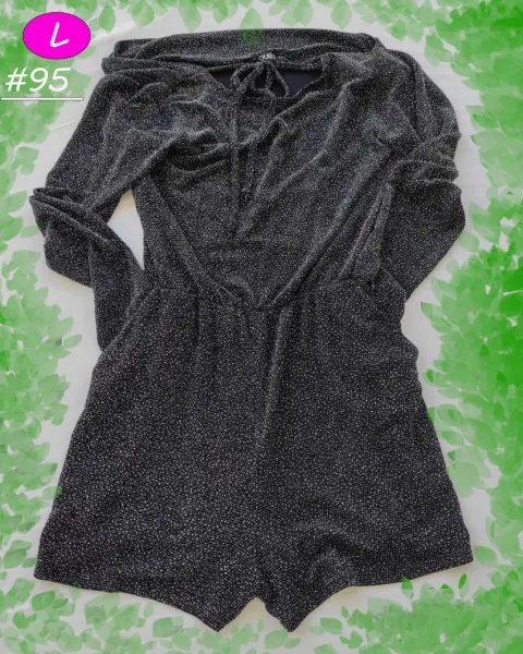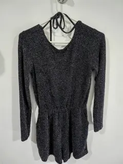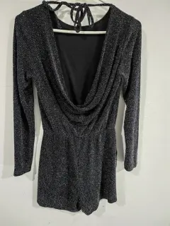 Jumper de QUIZ negro brilloso, nuevo sin etiqueta.Es mini short con manga larga y escote en la espalda que se puede ajustar a medida, cuenta con bolsillos laterales.Perfecto para una talla mediana - grande.Para salir con tus amigos, a un evento especial