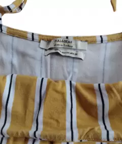 Jumpsuit color amarillo con rayas blancas, marca Pull & Bear, talla XS.
