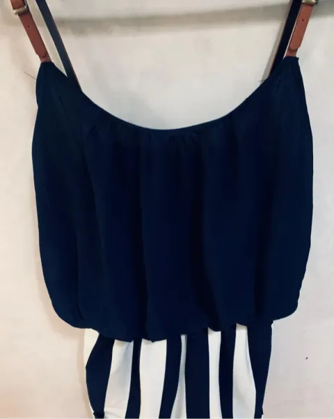 Padrisimo jumpsuit rayas con tirantes en tipo piel ajustables, en perfecto estado sin detalles. Puede dar hasta talla M ya que el elástico de a medias estira.