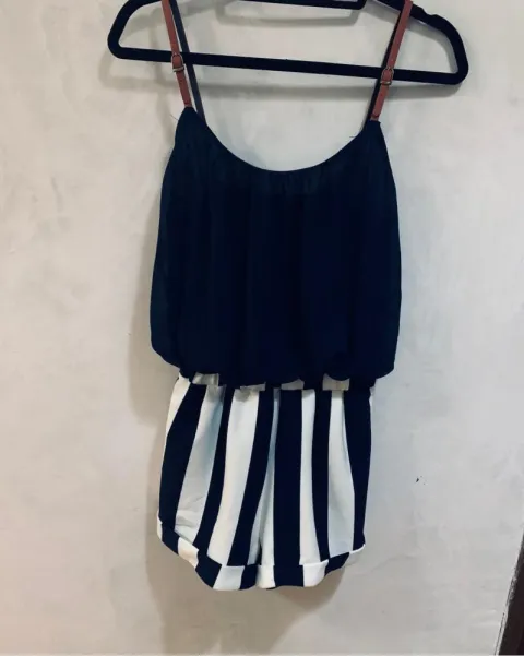 Jumpsuit a rayas. Padrisimo jumpsuit rayas con tirantes en tipo piel ajustables, en perfecto estado sin detalles. Puede dar hasta talla M ya que el elástico de a medias estira.