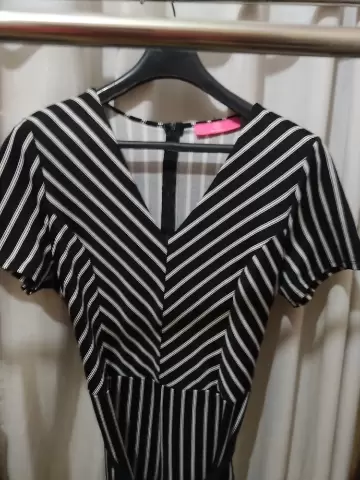 Jumpsuit a rayas blanco y negro. Jumpsuit a rayas en plumilla, blanco y negro, con cinturón a la cintura