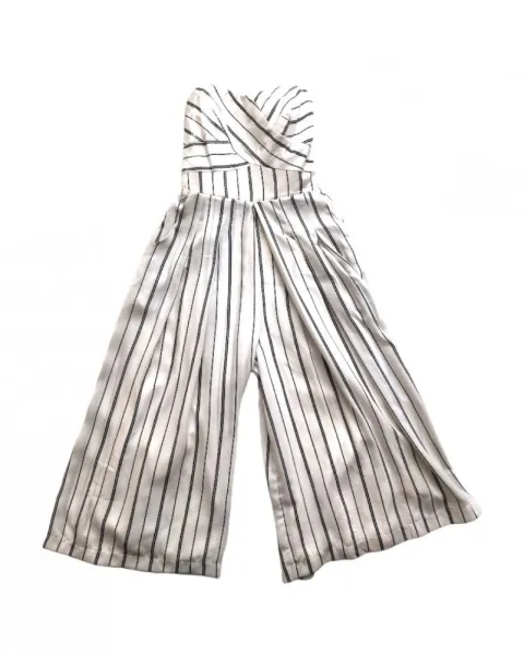 Jumpsuit blanco a rayas Greylin. Jumpsuite Culotte en color blanco con líneas en azul marino, sin mangas y con goma a la altura del pecho para un mejor ajuste.
