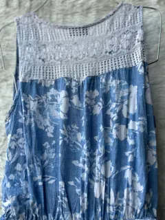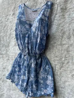 Jumpsuit celeste con flores blancas. Jumpsuit sin mangas color azul claro con flores blancas, fresco, con encaje en espalda y holanes en short, ideal para esta temporada de verano 💙🦋