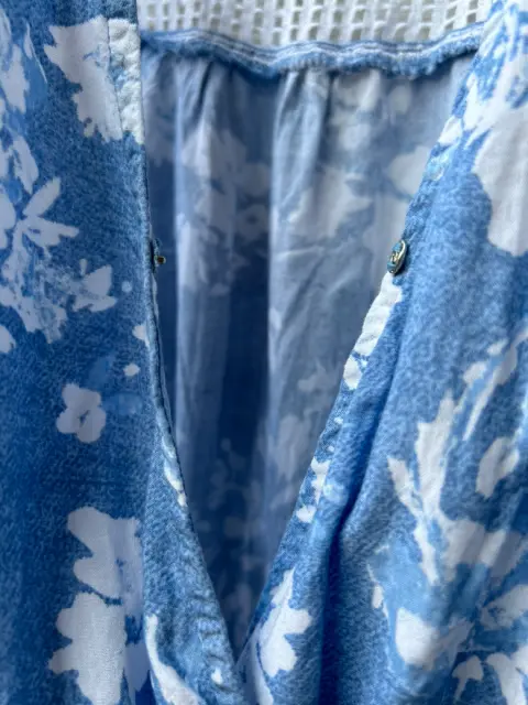 Jumpsuit sin mangas color azul claro con flores blancas, fresco, con encaje en espalda y holanes en short, ideal para esta temporada de verano 💙🦋