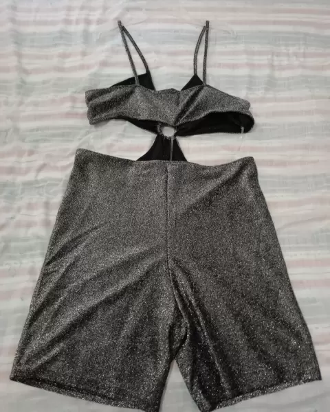 ✨Puesto solo una vez.✨Jumpsuit/Palazzo corto✨Color plateado✨En perfectas condiciones✨Envío inmediato
