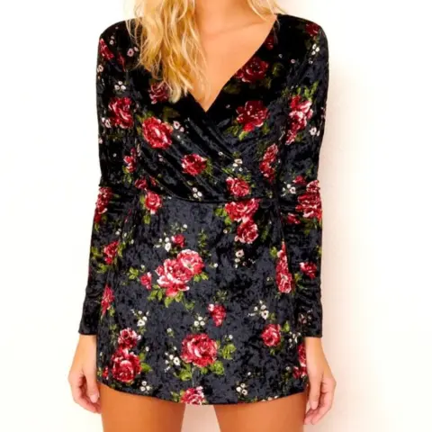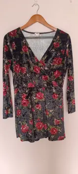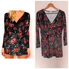 Descripción:Marca garageTallaLEs un jumpsuit, la tela es como de gamusa, se estira, es shorts faltaDiseño de flores, es L pero queda mejor un M