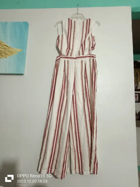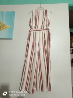 Fresco jumpsuit a rayas verticales. Con corte cutout a la cintura. Cierre en la espalda. Con bolsillos laterales. Medidas:Hombros: 34cmAxilas: 46cmCintura: 75cmLargo: 132cm
