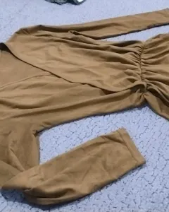 Jumpsuit short cafe mangas largas.En la primera foto muestro como luce puesto,La tela es muy suave ,comodo y elegante.