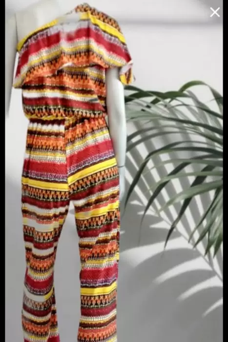 Jumpsuit Multicolor. Jumpsuit Multicolor, de un Solo Hombro,Resorte en Cintura y Bolsas a los Costados, Tela de Licra Ajustable Unitalla Da de una Talla M/ L