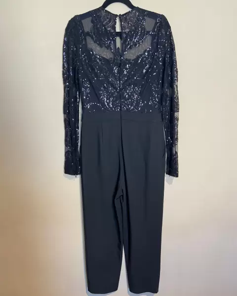 Jumpsuit negro. No es tan largo, las mangas quedan divinos.