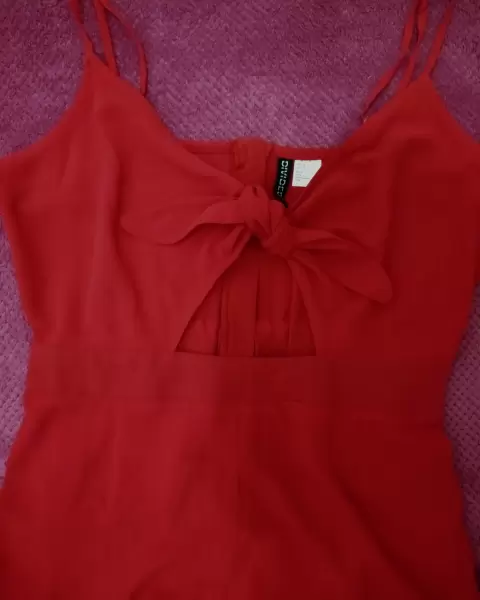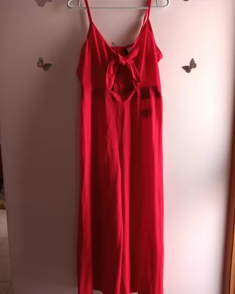 Palazzo rojo talla 8 marca H&M, queda desde ch-M, tela fresca y vaporosa. Tiene cierre en la parte posterior, resorte en cintura, tirantes ajustables. Anexe foto de referencia.