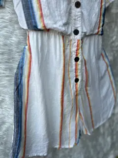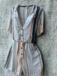 Jumpsuit rayado. Comodísimo jumpsuit de algodón, con cuello, escote en V y manga corta, botones de madera 🤩✨🌈