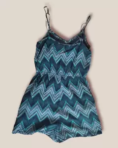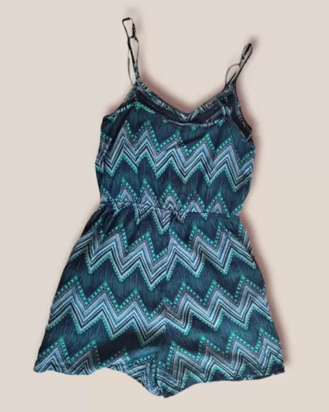 jumpsuit short. Jumpsuit short color azul y estampado, talla 10. La tela es fresca y cómoda.