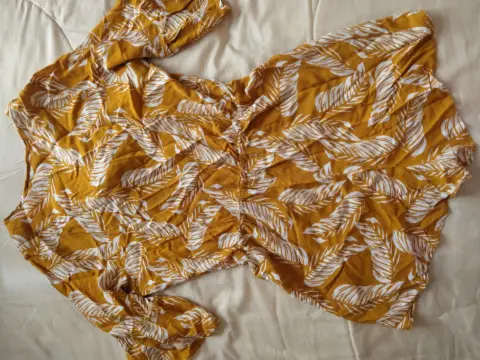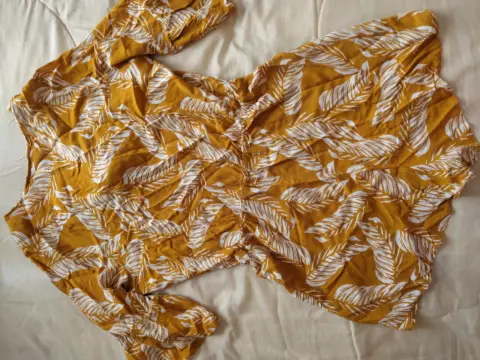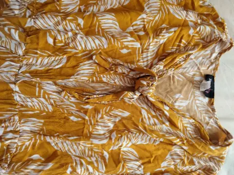 Super fresco, color amarillo, talla M , coqueto en la parte en frente.