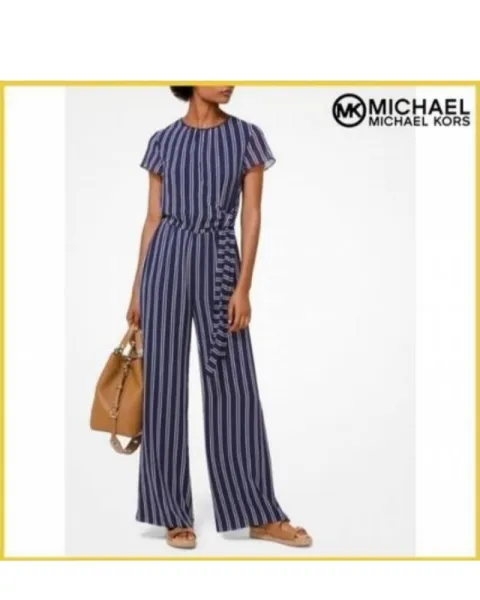 Jumpsuits MK. Jumpsuits tela Crepe no estira estampado de Gis línea blanca, Hermosa Caída, Pierna ancha, Talla 16 - 2XL Medidas :Hombro a Hombro : 42 cmsAxila a axila : 60 cmsCintura Total: 122 cms, contiene elasticoCadera Total : 130 cms