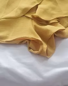 Cadual . Color mostaza. Cruzado, listón para ajustar y adornar a la cintura, tela muy suelta con caída, escote y capa en la espalda,un solo uso en perfecto estado.
