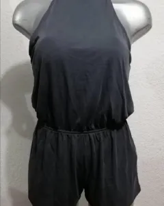 Jumsuit corto gris oxford. Hermoso jump corto con resorte en la cintura para un ajuste perfecto, color gris oxford, cuello tipo halter, tela 65%modal 35% poliester, al tacto se siente como tela tipo durazno.Medidas largo 79 cm, largo peto 49 cm, largo short 30, Contorno cintura 66,axila a axila 39 cm