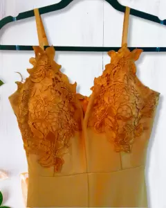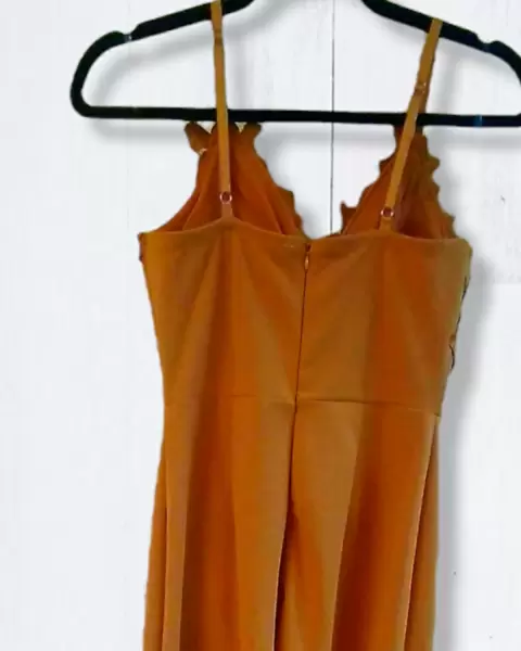 Hermoso y elegante jumpsuit en tono mostaza. Trae proteccion la parte del pecho por lo que ya no ocupas bra. Esta realmente precioso. Queda pegado al cuerpo da a talla ch y tambien a xch. Animate y negociamos 🧡🖤🧡