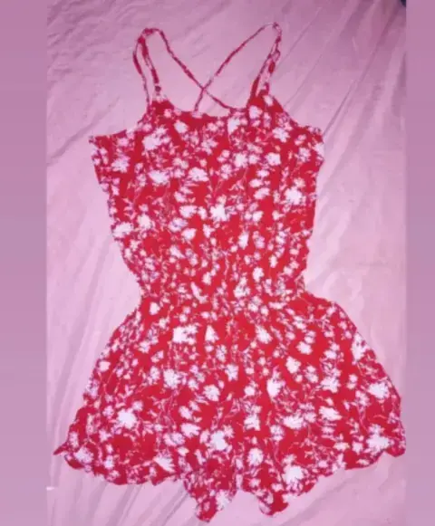 Mono floral ideal para la playa 🌴. Colo rojo con florecitas, talla M es short amplio, de tirantes. Muy lindo.