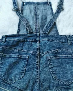 Overol de mezclilla. Es seminuevo, sólo se utilizó dos horas para una sesión,solo tiene una puesta, está en excelentes condiciones, talla chica. Tiene botones a los lados y se ajustan los tirantes.