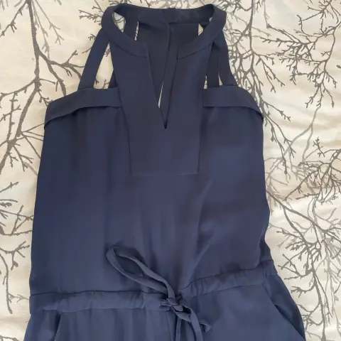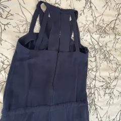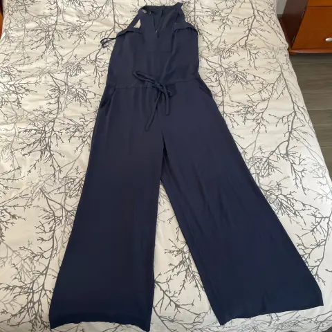 Palazzo con hermoso escote. Palazzo con escote en V y tirantes anchos frontales y laterales, tiene cinta en la cintura y las parte inferior es ancha tiene bolsas laterales