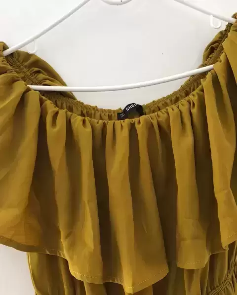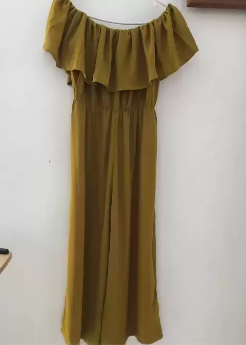 Palazzo Jumpsuit color Mostaza. Hermoso palazzo, jumpsuit, con elástico a la cintura, tiene elástico en la parte superior que permite ajustar el Olán y bajar a una posición cómoda , Nuevo , marca SHEIN