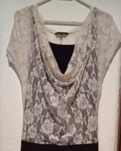 Palazzo Negro Con Beige de Encaje. Palazzo Negro con beigeLa parte de arriba es beige de encaje elásticoEs tela muy suave y queda par a personas talla agrande a extra grande muy cómodoSolo una puesta en excelente estado 👌