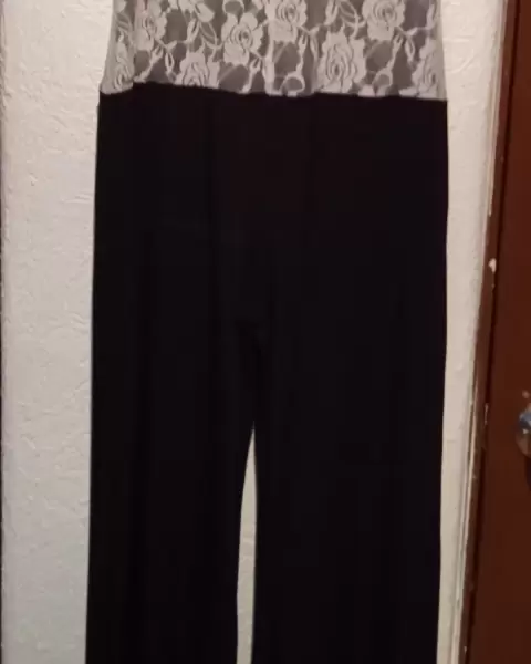Palazzo Negro con beigeLa parte de arriba es beige de encaje elásticoEs tela muy suave y queda par a personas talla agrande a extra grande muy cómodoSolo una puesta en excelente estado 👌