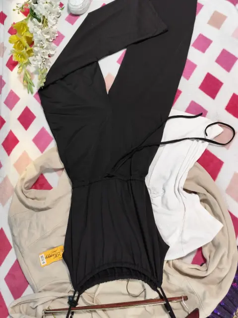 Palazzo / Overol. Overol satinado / Palazzo negro. Tela ligera, fresca, con stretch. Cintilla en la cintura para dar forma. Tirantes ajustables para abrir o cerrar el cuello y hacerlo tank. Piernas anchas. Muy bonito y en tendencia. Dice Talla M, pero queda desde Ch.