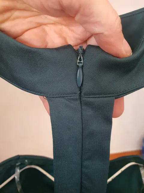 Color verde bandera. Talla M. 94% poliéster, 6% spandex. Con cierre atrás, escote bajo.