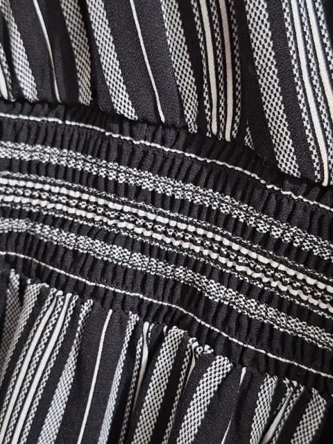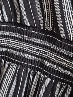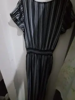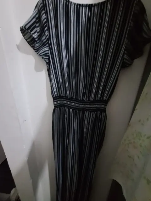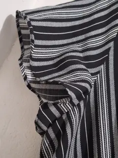 Pantalón completo, tela ligera y fresca. Pantalón completo (mono) , de color blanco y negro a rayas, con un tipo cinturón a la cintura