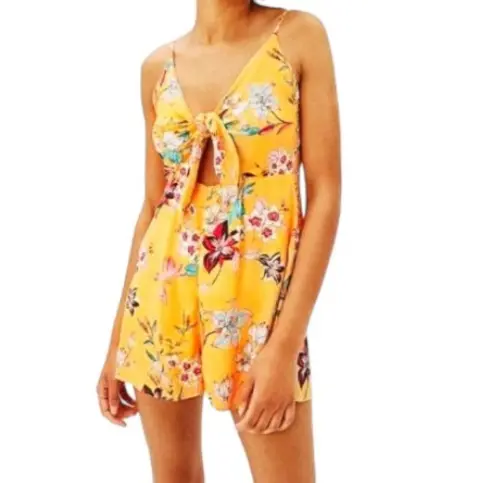 Romper amarillo floral🌻🥭🌺. Súper bonito romper en color amarillo/mostaza con patrón de flores🥰💖 tiene cintas para ajustar al frente y decorar con un moñito además de que deja una abertura discreta y bonita💖Tirante ajustables, y fondo en la parte del short para que no transparente💖Nuevo sin etiqueta🥰 Talla M🌺
