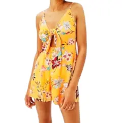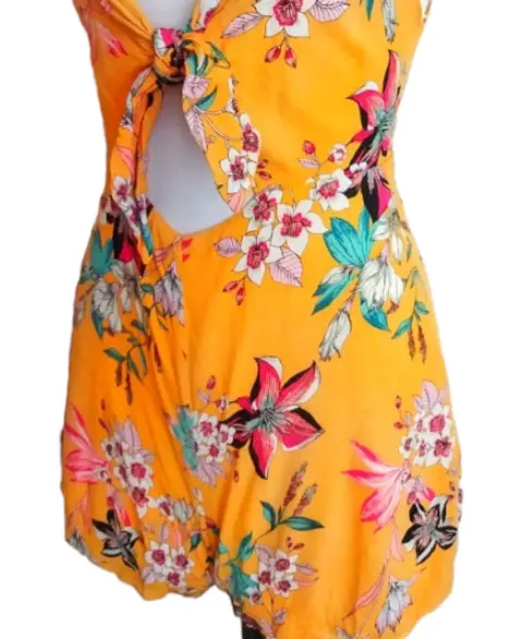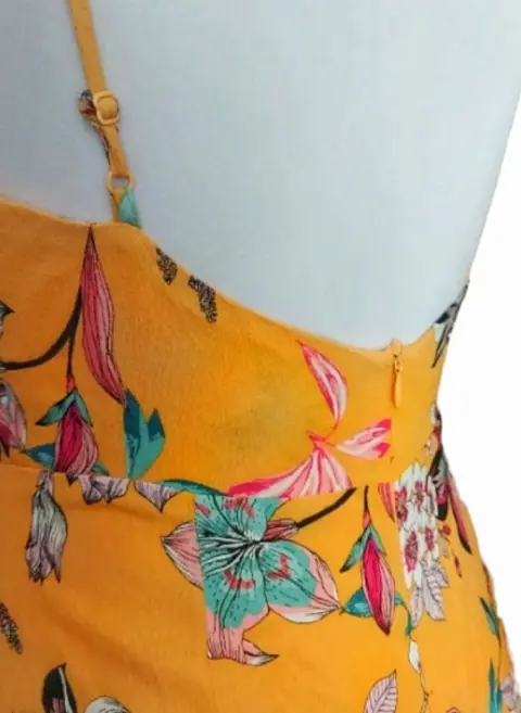 Súper bonito romper en color amarillo/mostaza con patrón de flores🥰💖 tiene cintas para ajustar al frente y decorar con un moñito además de que deja una abertura discreta y bonita💖Tirante ajustables, y fondo en la parte del short para que no transparente💖Nuevo sin etiqueta🥰 Talla M🌺