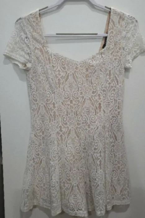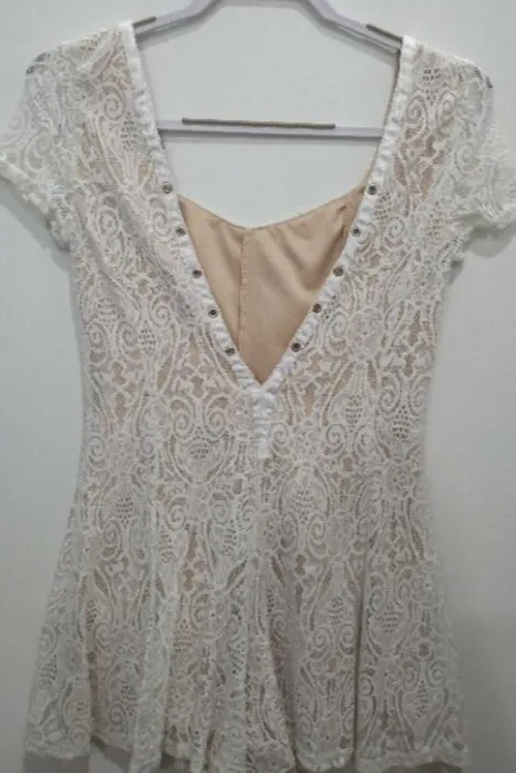 Romper de encaje marca Forever 21Viene forrado por dentroTiene escote en V en la espalda.Talla M. Viene reducidoMedidas aproximadas: 37cm de axila a axila,71cm de largo desde el hombro.*TODAS MIS PRENDAS SE DESINFECTAN CON LYSOLLAVANDERIA PARA TU MAYOR TRANQUILIDAD*