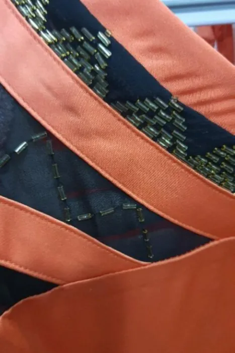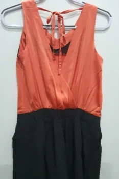 Romper de vestir marca Vero Moda.Es naranja con negro y tiene aplicación de chaquira.Tiene bolsas.La parte trasera tiene un bonito escote en V.Talla M. Medidas aproximadas: 42cm de axila a axila,37cm de cintura, 85cm de largo desde el hombro.*TODAS MIS PRENDAS SE DESINFECTAN CON LYSOLLAVANDERIA PARA TU MAYOR TRANQUILIDAD*
