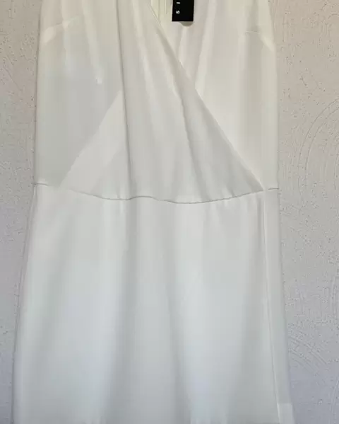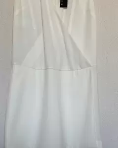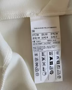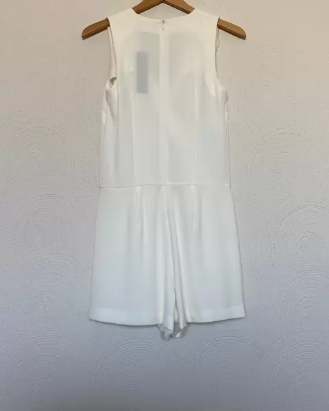 Romper falda/ short Sisley. Es un romper que por atrás es short y adelante es vestido, se abrocha con cierre atrás, adelante es cuello V envolvente, sin mangas, es color crudo