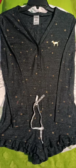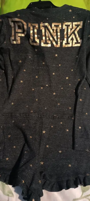 😍 sexy jumpsuit marca PINK talla CH. Bonito y sexy jumpsuit gris talla chica de puntos está nuevo lo compre en un remate y no me di cuenta que tiene unas pequeñas manchas muestro en última foto