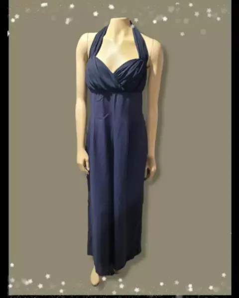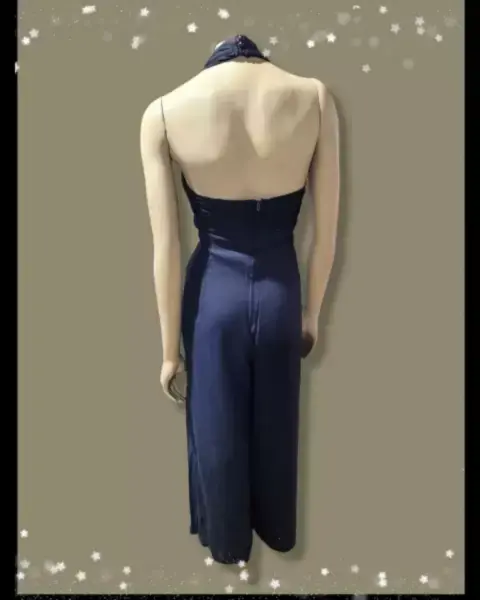 Traje Completo de Pierna ancha. Traje de espalda abierta sin mangas de pierna ancha, color negro sólido, hombro abierto, cremallera y cierre de espalda de 3 botones, correas para el cuello de 4 "de pulgada, frente resistente con forma de corazón de encaje, estilo deslizante, medidas: 45 "axila, cintura de 17" de pulgada, caderas de 22 "de pulgada, entrepierna de 25.5", apertura de pierna de 14 ", se ve nuevo pero sin etiqueta ni etiqueta, verifique las imágenes.