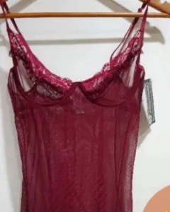 Muy hermoso y de excelente calidad, con encaje y spandex lo que permite ajuste perfecto, puede quedar a M también. Envío rápido.