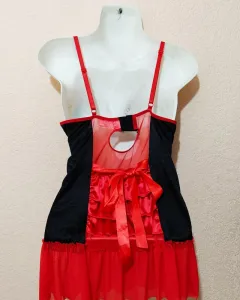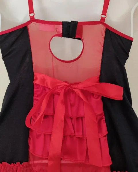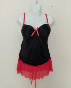 BABYDOLL VICKY FORM. Hermoso babydoll vicky form negro con rojo, holancitos y moños, muy lindo, supercomodo, coqueto y un toque de elegancia, Talla 36.
