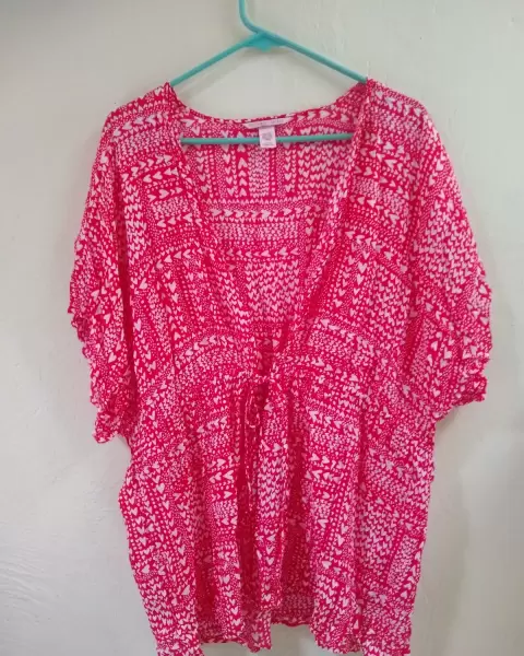 Sexy y bonita bata de noche, color rosa con vivís blancos, cinturón que ajusta a la cintura, ideal para estás noches calurosas