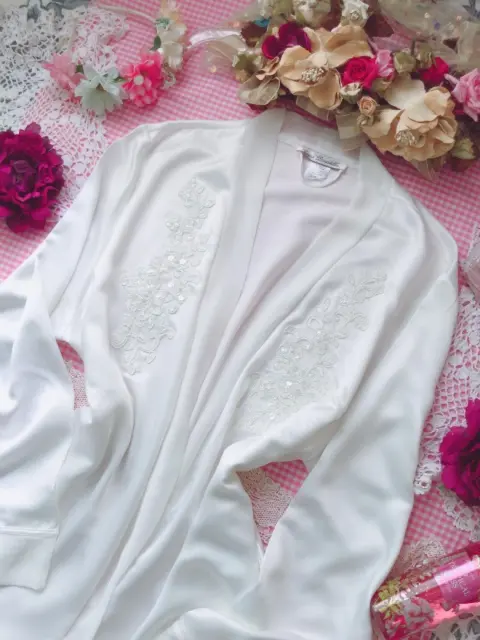 ❤️BELLA BATA SATÍN BLANCO SIZE L ❤️. Linda y bella bata de satín color blanco, con mangas largas y bordado de flores y perlitas frontal, sin cinta para ajustar cintura, 2 cintas interiores, sin detalles ni roturas. Por favor checar bien las fotos para evitar devolución o calificación no concordante a mi descripción. Envíos los lunes ❤️