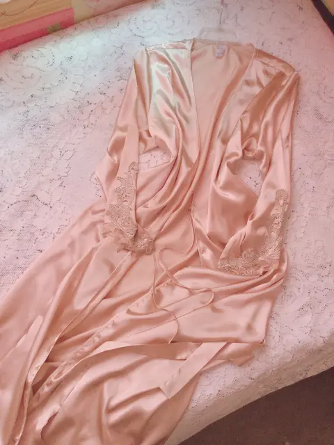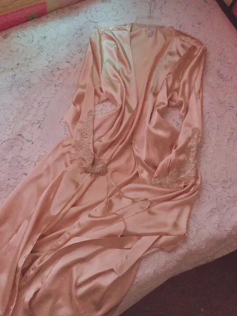 ♥️BELLA BATA SATÍN CARAMELO L/XL♥️. Linda y bella bata de satín color beige caramelo, con cinta para ajustar cintura,bordado en hilos de Plata en mangas,largo a tobillos,detalle de marcas imperceptibles frontales y traseras,nada grave. Por favor checar bien las fotografías para evitar devolución o calificación no concordante a mi descripción. Envíos los lunes ♥️