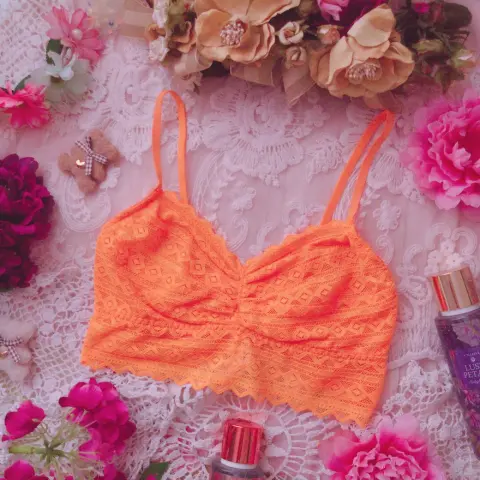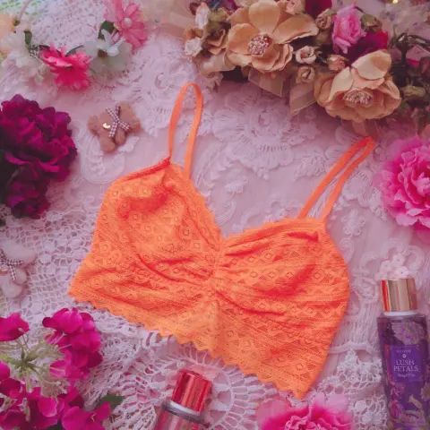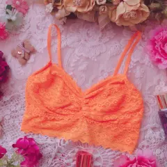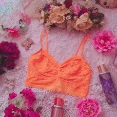 🧡BELLO BRALETTE ENCAJE ORANGE S🧡. Lindo y bello bralette de encaje color orange claro, con tirantes ajustables y pequeño balconette, sin detalles ni roturas. Por favor checar bien las fotos para evitar devolución o calificación no concordante a mi descripción. Envíos los lunes ❤️