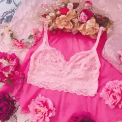🌸BELLO BRALETTE ENCAJE ROSA SIZE L🌸. Lindo y bello bralette de encaje color rosa baby, con tirantes ajustables y banda ancha Para mayor ajuste y confort, sin detalles ni roturas a excepción de falta de etiqueta textil pero es de la marca. Por favor checar bien las fotos para evitar devolución o calificación no concordante a mi descripción. Envíos los lunes ❤️