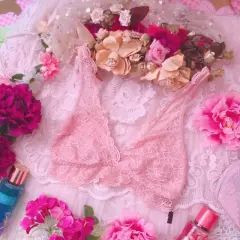 🌸BELLO BRALETTE ENCAJE ROSA SIZE M🌸. Lindo y bello bralette de encaje color rosa baby, con tirantes ajustables y pequeño balconette, sin detalles ni roturas. Por favor checar bien las fotos para evitar devolución o calificación no concordante a mi descripción. Envíos los lunes ❤️