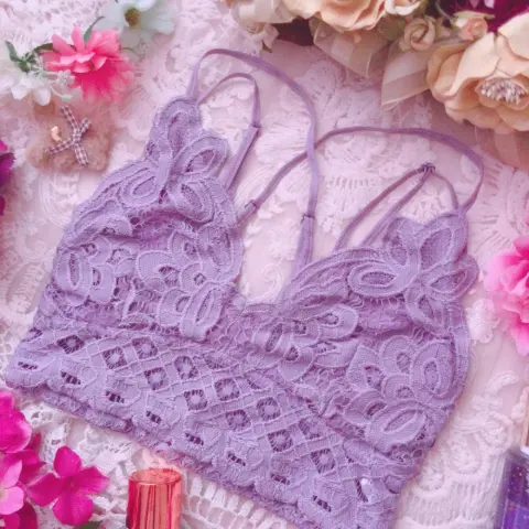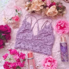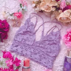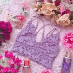 Lindo y bello bralette de encaje color violeta, con tirantes ajustables y arneses, bordado de flores, sin detalles ni roturas. Por favor checar bien las fotos para evitar devolución o calificación no concordante a mi descripción. Envíos los lunes ❤️