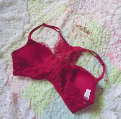 ♥️BELLO BRASSIERE ENCAJE CEREZA 32C♥️. Lindo y bello brassiere francés encaje color rojo quemado, con tirantes ajustables y cross, banda ancha y broche frontal, sin detalles ni roturas. Por favor checar bien las fotos para evitar devolución o calificación no concordante a mi descripción. Envíos los lunes ❤️
