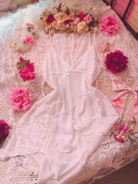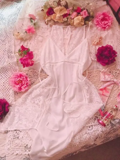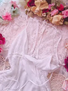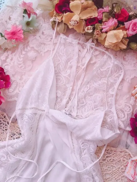 Lindo y bello camisón de encaje y algodón color blanco, con tirantes en cross y espalda cubierta de encaje, corto arriba de rodilla, cinta para ajustar cintura, sin detalles ni roturas. Por favor checar bien las fotos para evitar devolución o calificación no concordante a mi descripción. Envíos los lunes ❤️